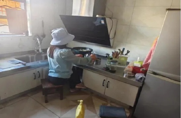 照片中,她正在低位灶台的厨房里忙碌着,为生病的父亲烹饪菜肴。不同于一般的厨房,方正仙家的厨房显得较为“迷你”,但非常适合方正仙的需求。