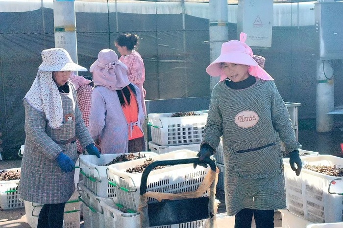 宣威市福康生物科技有限公司法人代表杨光早:公司目前采取公司+合作社+种植大户+农户的模式,除了自己种以外,还积极发动农户参与种植,同时按照“低位保价、高位市价、以质定价”原则实行保底收购,真正实现村民在家门口创业就业。