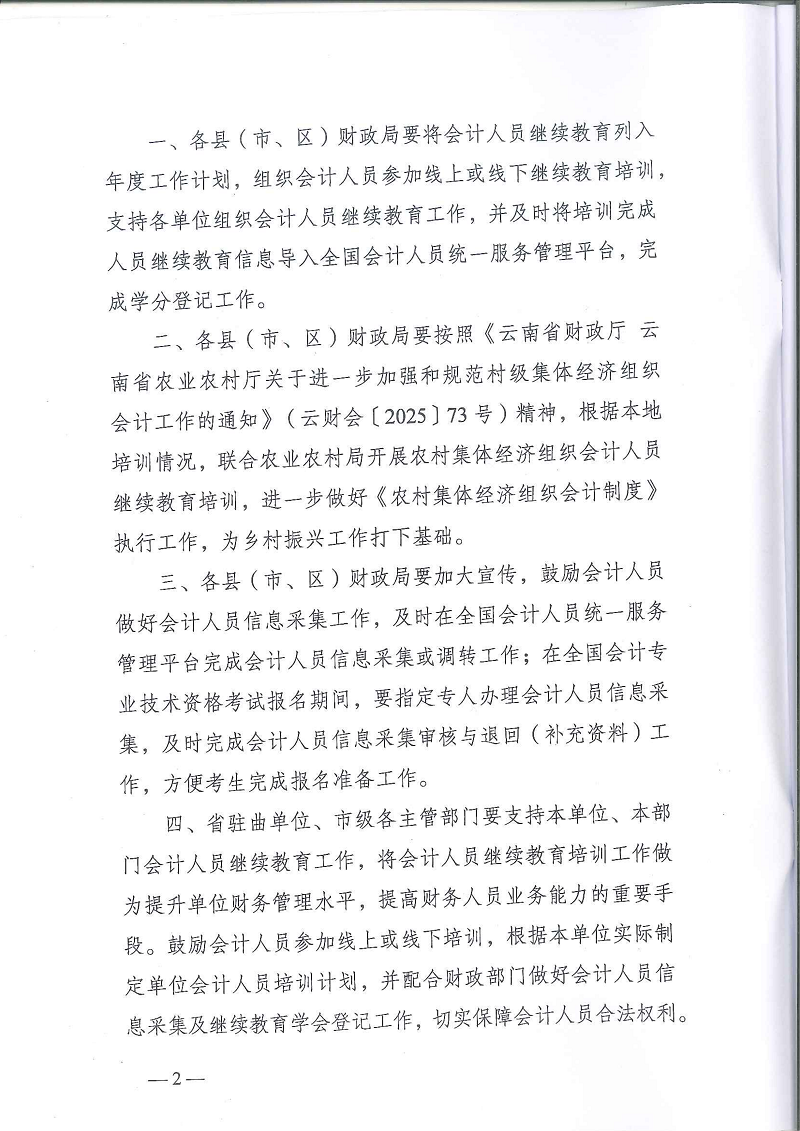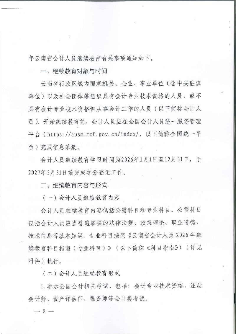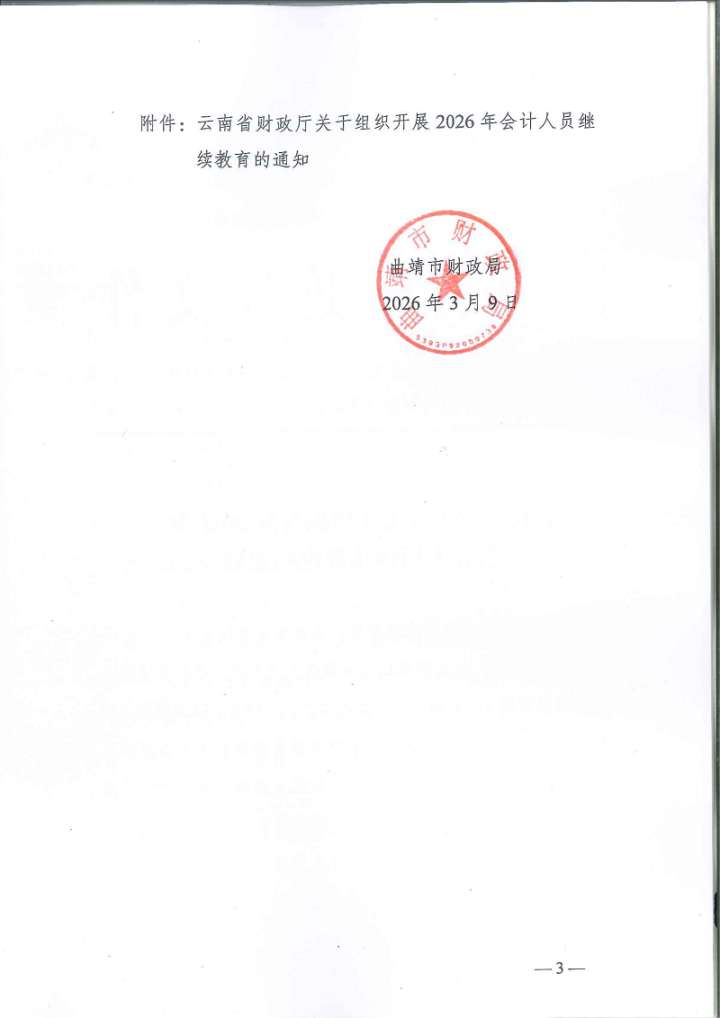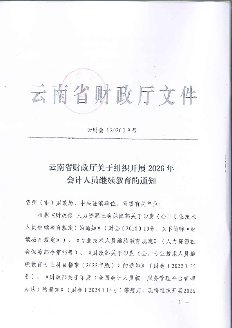 关于转发云南省财政厅关于组织开展2026年会计人员继续教育的通知